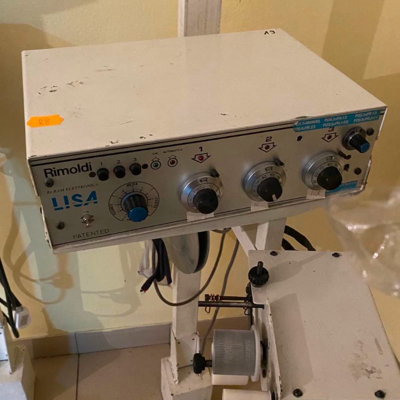Rimoldi Lisa Ram to elektroniczny naprężacz z podajnikiem do gumy. Posiada 3 programy. Bardzo precyzyjny i prosty w obsłudze do tego bezawaryjny. Urządzenie jest wyposażone w solidny, ciężki statyw, który umożliwia wygodne ustawienie maszyny. Naprężacz standardowo posiada rolki, które umożliwiają podawanie gumy o szerokości od 0 do 25mm (opcja dodatkowa dostępne są rolki w szerokościach 45mm, 50mm, 80mm, 100mm,150mm) Zasilanie urządzenia 230V. Naprężacz wyposażony jest w dodatkowy potencjometr połączony z wbudowanym czujnikiem grubości gumy. Trzy główne potencjometry, obsługują regulacje naprężenia gumy w zakresie od 0 do 1000 jednostek w każdym programie. Pozostałe trzy przyciski, pozwalają dobrać odpowiednie programy. Główny program obsługiwany przez pierwszy potencjometr działa ciągle, drugi program można załączać czasowo przytrzymując nogą „mikro-wyłącznik” (dołączony do zestawu), po jego zwolnieniu ponownie działa pierwszy program.